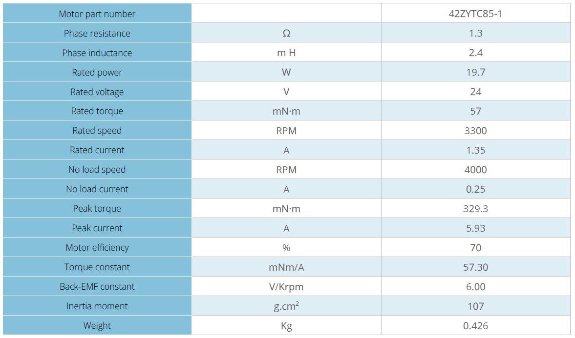 42mm Brushed - Motor Characteristics
